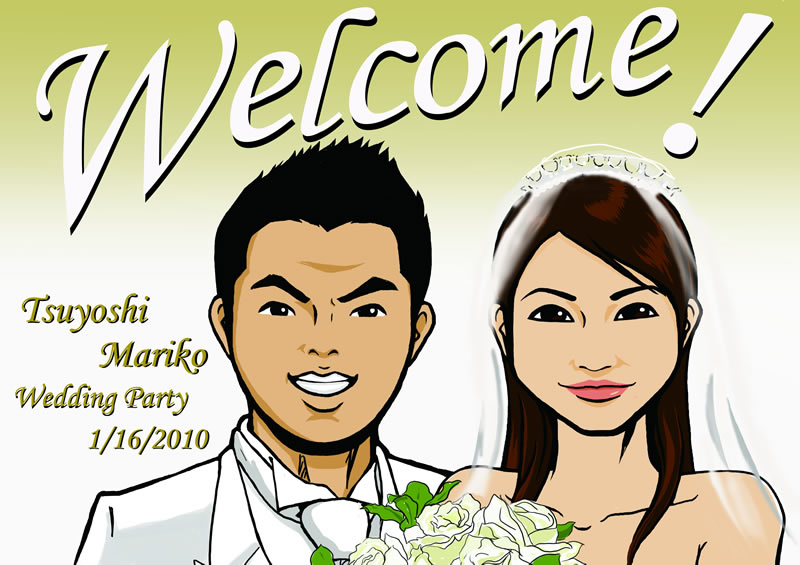 大学時代の先輩に頼まれ、結婚式のウェルカムボードを描きました。